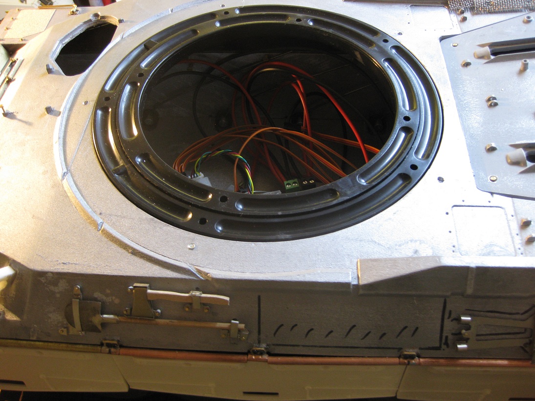 So, der Poly Turm wird. Das Lager hab ich erstmal zur Stabilisierung und Funktionskontrolle "angeheftet". Es funktioniert sehr gut, spielfrei und ruhig. Was fehlt wäre ein Zahnkranz um einen Motor nebst passendem Ritzel zur Turmdrehung einbauen zu können. Hier "fehlts" noch etwas. Wenn ich mal wieder Luft hab werd ich mich mal ans Rohr/ Rohrwiege machen. Die sollen aus Alu entstehen. Für alles andere ist der Polyturm stabil genug.
