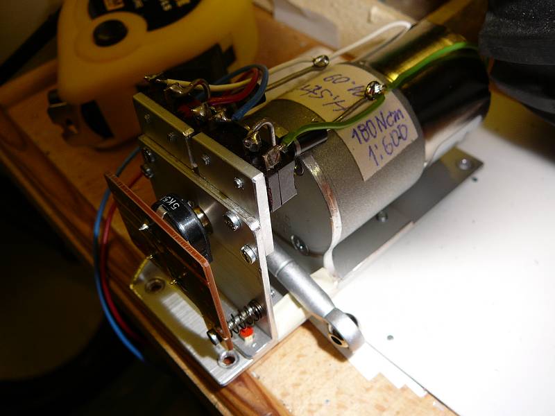 Und da die zu bewegende Masse der Waffe ja nicht wenig ist, dachte ich einen Getriebemotor umzubauen.