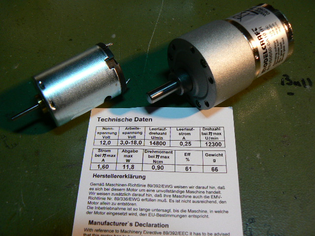 In meinem M1 sitzt das gleiche Getriebe, aber da habe ich die Standardmotoren dann gegen höherdrehende LiPower 480 HS BB von Jamara ausgetauscht. Passt hervorragend und macht den Burschen sehr agil. Spiele derzeit mit dem Gedanken, die bei der nächsten größeren Inst auch in meinen Geppi nachzurüsten.