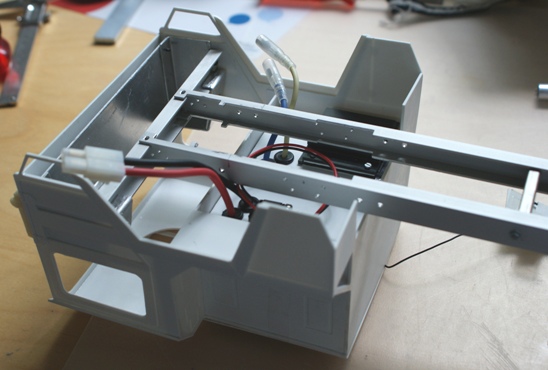 Leider gibts keine Bilder von dem Ganzen zusammen gebaut, weil ich noch die Rahmenfront mit Akku- und Fahrerhaushalter fertigen muß. Bis dann also in diesem Theater!