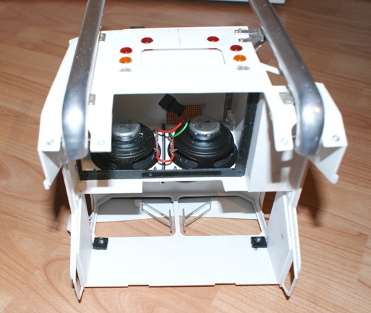 Auch der Funktion dienen kleine Magnete, die den Motorraumdeckel zu halten, die Klebestreifen haben ausgedient. Bei der Gelegenheit wurde der Deckel mit Lüftergitter, Gummiauflage und Griffen detailiert.