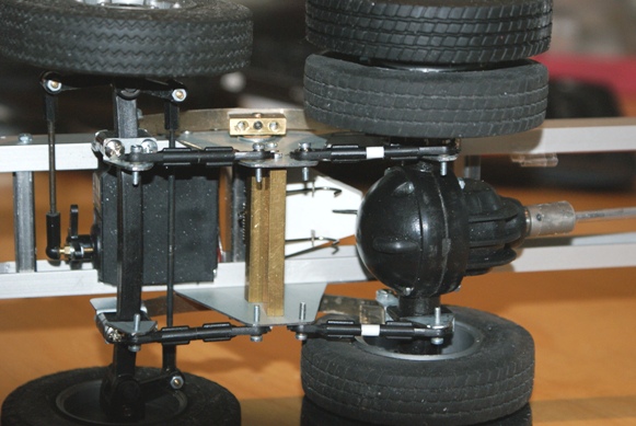Was ich noch löten mußte ist eine Verbindung der beiden Lenkservos. An das vordere habe ich direkt ein Stück Verlängerung mit Verbindungsbuchse gebraten. Es klappt recht gut,
