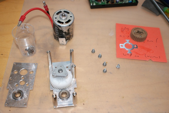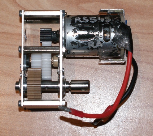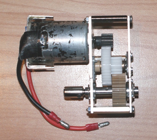 So siehts dann zusammen aus. Als Beispiel ist der Motor montiert, der als erstes Katapult eingebaut war. Ein namenloser 540er, 5-Polig. Es können auch andere Motore montiert werden. Das Getriebe erreicht knapp 6:1.