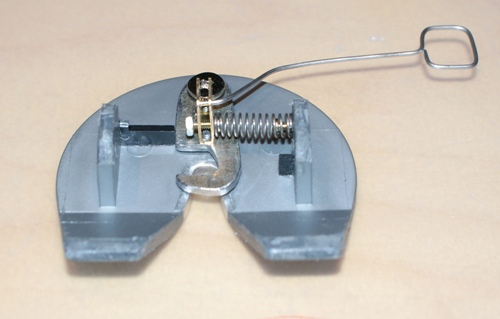 Das wichtigste an einer Sattelzugmaschine ist die Sattelkupplung, auch Sattelplatte. Auch wenn zumindest die US-Trucker das Ding "fifth wheel" nennen (wobei die meist 10 Räder an der Zugmaschine fahren). Kauft man eine brauchbare fertige, kann man schnell 100-200 Teuronen los werden. Ich habe mir eine günstige alte Wedico-Version geholt, die aber nicht mehr dem aktuellen Stand der Technik entspricht. Ich habe die Aufnahmen gekürzt, damit sie wippen kann wie die originalen, eine Alu-U-Bandage verengt das Mäulchen auf das aktuelle Wedico-Maß. Ein Stahl Fanghaken, Bedienhebel aus Draht und eine Vorrichtung zur späteren Fernbedienung runden das Paket ab.