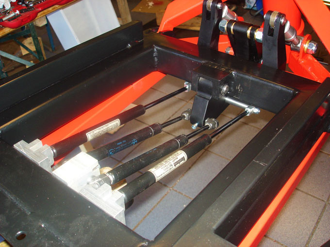 Auf dem Foto sieht man die Gasdruckfedern im Rahmen montiert.