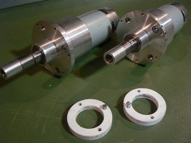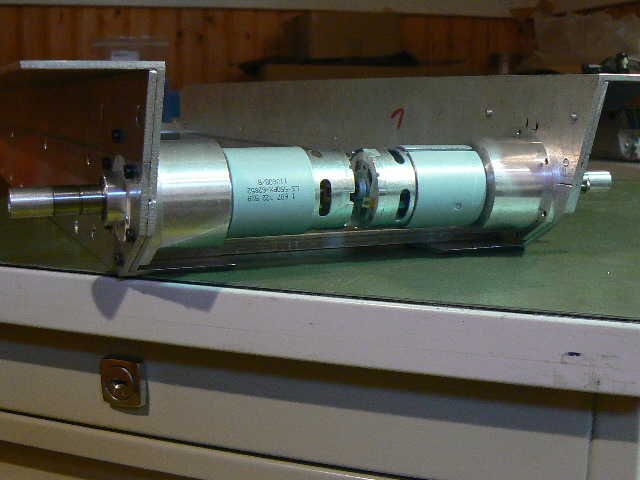 Die Einheiten sind recht selten zu bekommen. Sind Vorläufer einer Serie von Daniel Schwarz. Ich habe sie mir qualitativ besseren Motoren von Bosch ausgestattet und etwas überarbeitet. Platzsparender kann man kaum Antriebe verbauen. Für das Problem in der Gesamtlänge gabs also nur die Lösung den Aufnahmeflansch um 1,5mm pro Seite abzudrehen und dann hoffen......