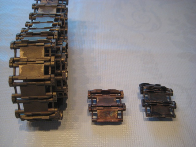 Rechts, Kette mit chemischer Pampe ( Brüniermittel ) behandelt.