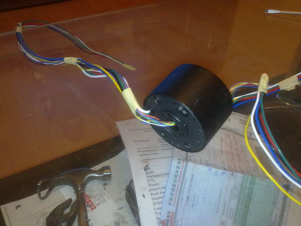 Genau gesehen sind es zwei Schleifringe. Einer aussen für die Antriebsmotoren und ein Miniaturschleifring im ersten Ring für die Signalübertragung.