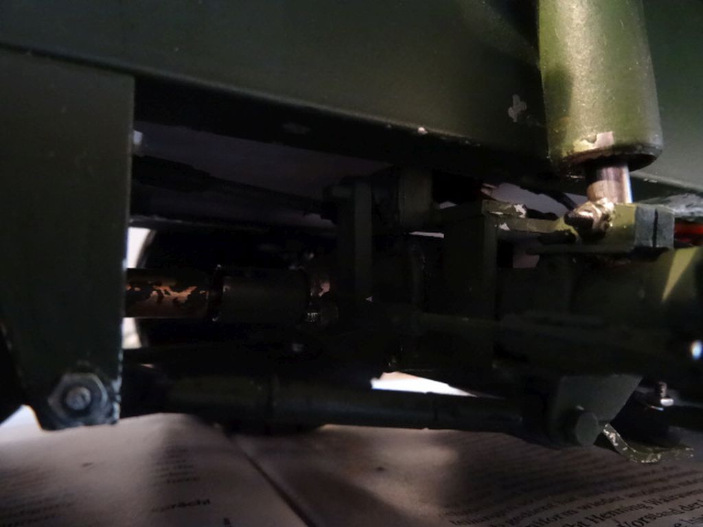 Der Ein oder Andere wird es bei Vorführungen und auf Videos vom Fahren schon bemerkt haben , dass die Achsen aufgrund der ganzen Umlenkungen und Hebel so viel Spiel haben , dass sie sich im Fahrbetrieb ( vor Allem im Gelände ) etwas selbsständig gemacht haben und vor Allem die mittlere Achse sich bei Widerstand am Reifen extrem zur Seite gedrückt hat .