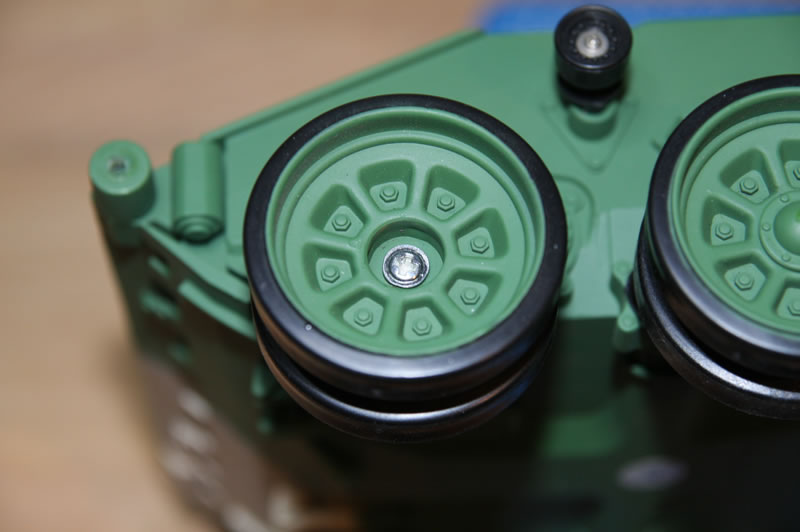 1. Die Laufrollen sind dermaßen flatterig, die müssen unbedingt runter und achsmäßig nachgearbeitet werden. Nur wie ich die runterbekommen soll, weiß ich noch nicht ganz genau.
