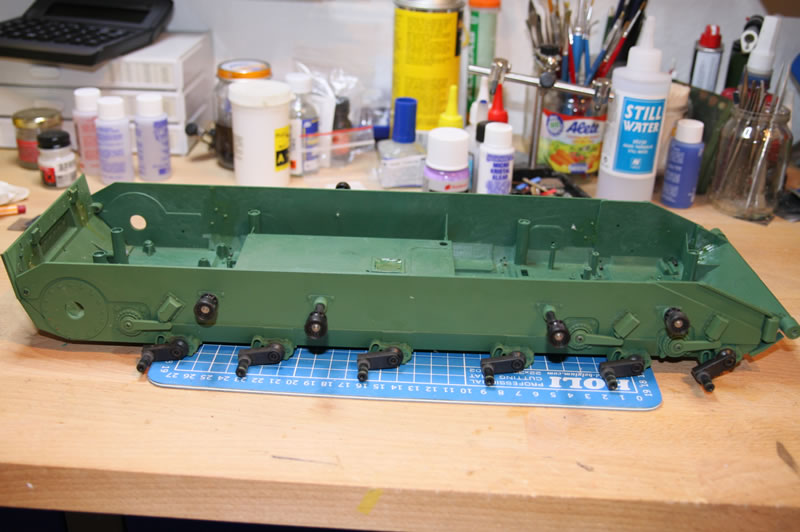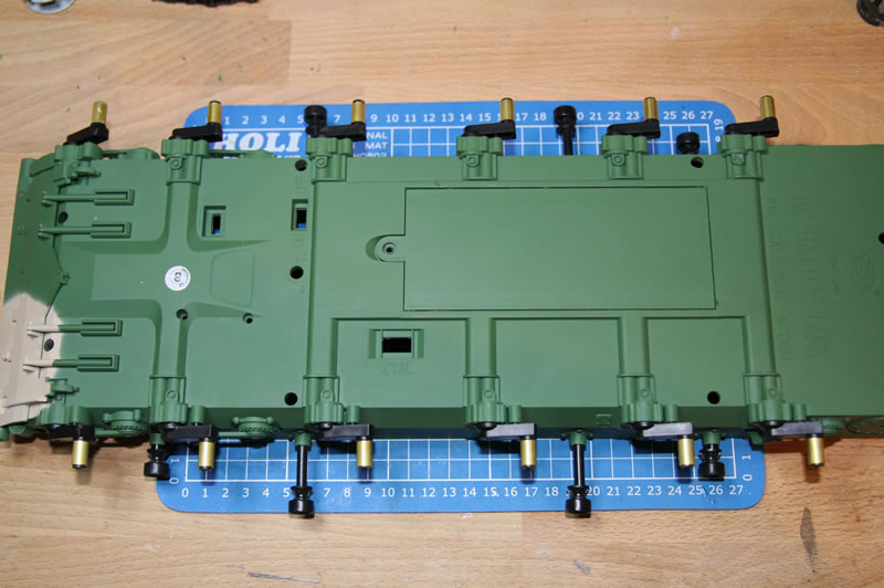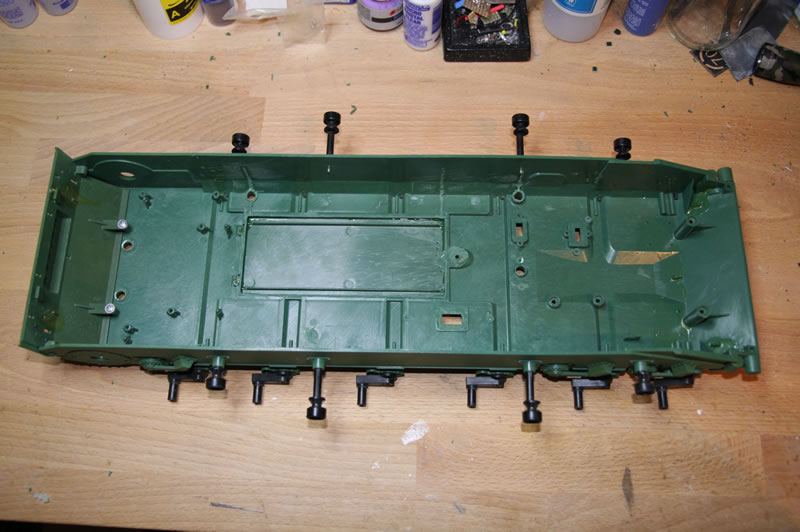 Generell muss die Wanne zus. versteift werden, die ist indiskutabel weich und flatterig. Mir schwebte da das AFV-System für den Leo2 vor, werde jetzt die Wanne mal ausmessen und dann was auskonstruieren.