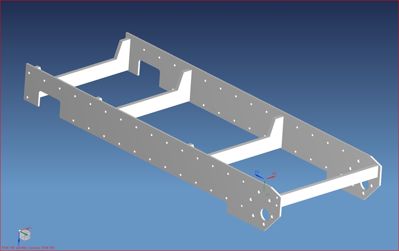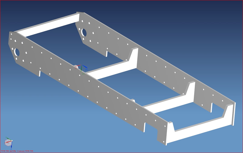 hier einmal das CAD-Modell der Wannenversteifung. Morgen noch letztes Feintuning, dann geht es in den Laser. Da ich ja bereits einen Mitstreiter gefunden habe, der auch eine haben möchte, habe ich mir für das Lochmuster entschieden. So kann später jeder selbst entscheiden, was für Komponenten er verbauen will und wo die untergebracht werden sollen.