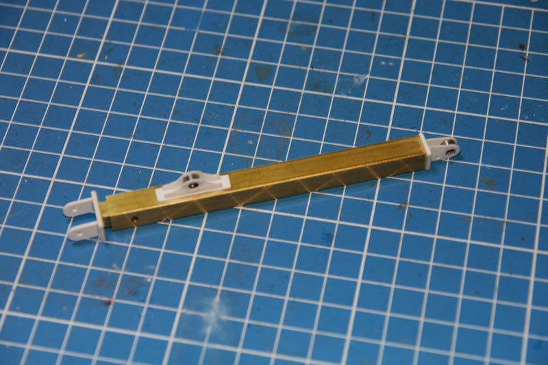 Mal wieder etwas Neues der A1-Version: Unter dem Kranarm befindet sich eine zus. Hilfstraverse, die natürlich entsprechende Halter benötigt. Dies ist der vordere, den hinteren muss ich noch schnitzen.