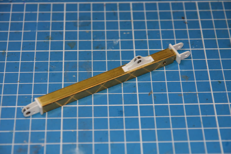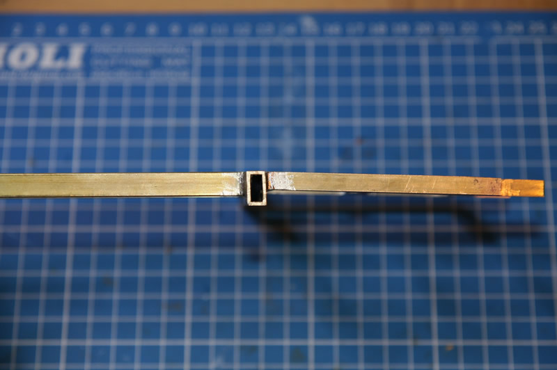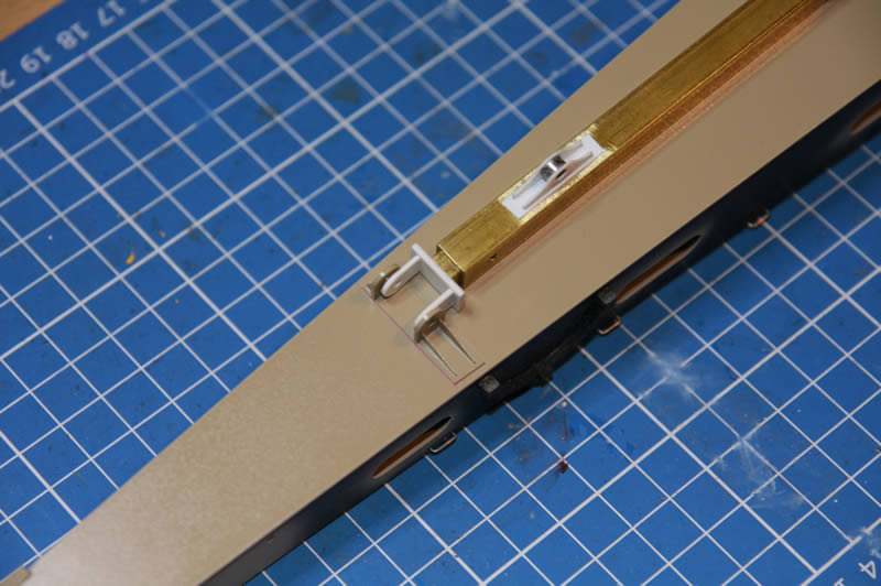Diese Mini-Baustelle vorerst verlassen und mich einem echten Brecher zugewandt: Die neue Heckablage. Die hat mit dem alten System nicht mehr wirklich viel gemein, das verspricht also interessant zu werden. Zunächst passende Messingprofile zugeschnitten und ausgerichtet. Hier ein Bild um einen Größenüberblick zu bekommen.