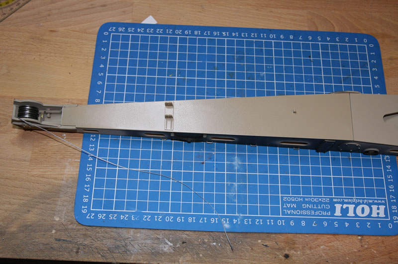 Hier einmal das Querprofil in der Seitenansicht. schön zu sehen, der Knick der hinteren Hälfte des Trägers. Kein Baufehler, das soll so!