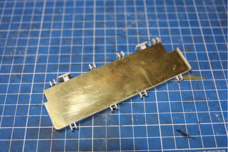 Zunächst musste der seitliche Ausrüstungsträger überarbeitet werden. Die erste Version bestand aus Kunststoff, welche vom Kleber beim abbinden verzogen wurde. Also die Grundplatte aus Messing geschnitzt und mit Kunststoffstreben von Evergreen wieder versteift. Die großen Träger konnte ich noch vom Ursprungsteil retten. angebaut wird er wieder, sobald der große Ausrüstungsträger fertig ist. Solange stört er nur.