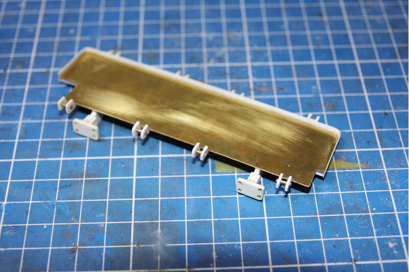 Auf den Heckträger mussten zunächst Abstandsprofile montiert werden. In der Realität Hohlprofile mit einer Längsnut, habe ich simple Plastikstücke angepasst. Viel sehen wird man davon nämlich nicht bzw. gar nicht.