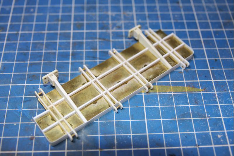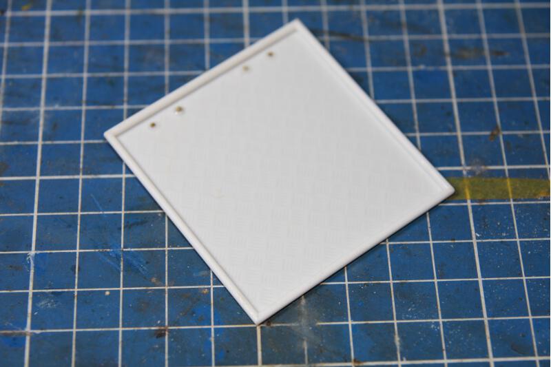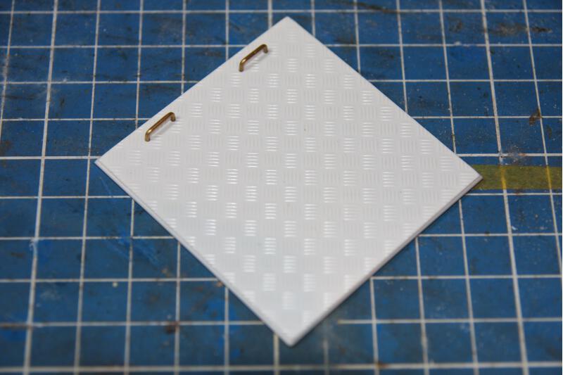 Echtes Schmankel sind die Verschlussklappen aus Plastik-Riffelblech. Diese habe ich auf einen Rahmen aus 2mm-Rundplastik geklebt und mit Handgriffen aus 1mm Messing versehen.
