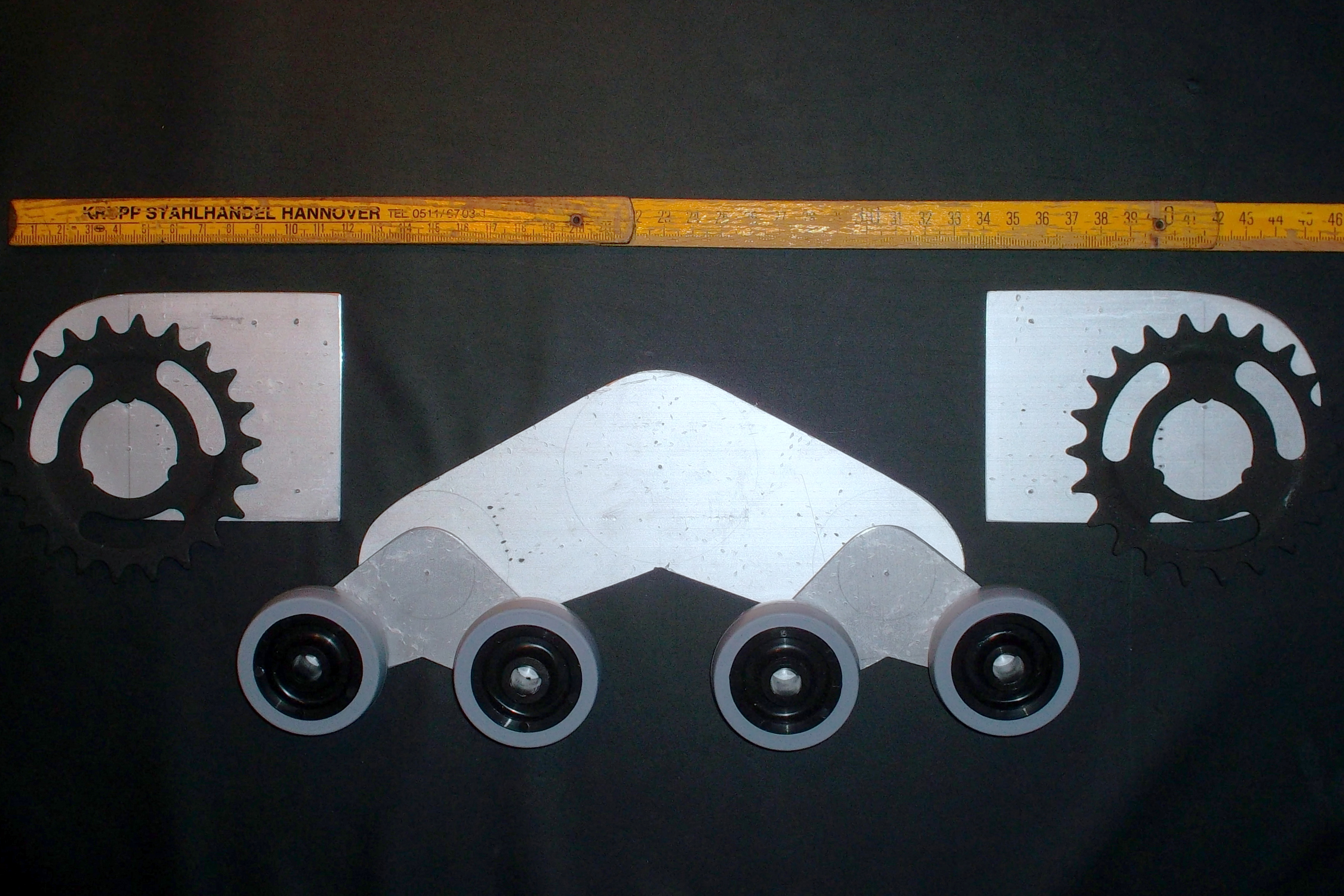 vorerst ein paar wichtige Eckdaten in Bezug auf mein Vorhaben: Geplant ist der Bau eines Kettenfahrzeugs aus Aluminium mit einer Länge von 450mm und einem Gewicht von ca 8Kg.Viele Teile sind bereits gefertigt. Um die Weiterplanung bzw den Bau meines Projekts fortführen zu können erfordert es aber noch die Klärung drei wichtiger Fragen, die wären: