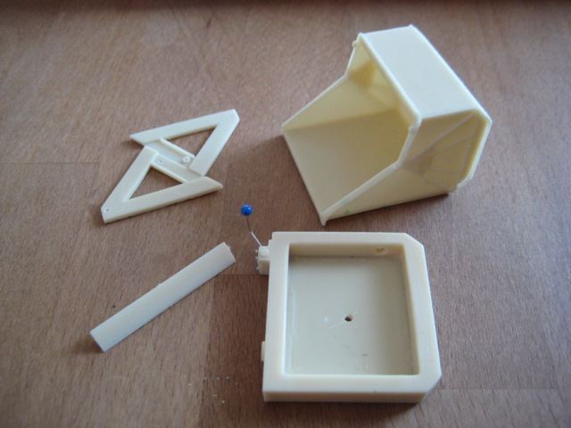 Im Anschluß habe ich die Behälterteile gesäubert und verklebt, jedoch müssen hier noch im Laufe der Zeit einige Veränderungen künstlerrischer Art vollbracht werden.