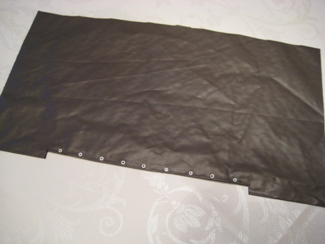 Der Abschnitt wird unten ein Stück gefaltet und dann wieder mit Poly Ösen versehen.
