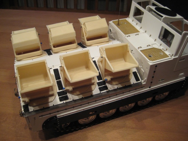 Im nächsten Arbeitsgang habe ich dann mal die ersten Resinteile ausgepackt und auf dem Werferdach