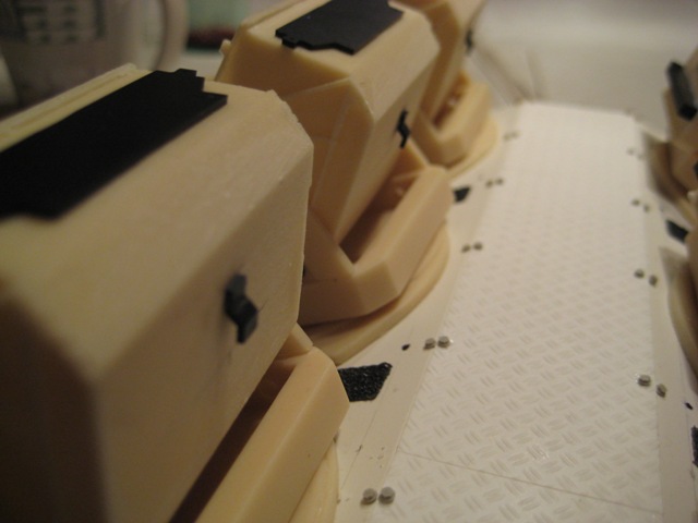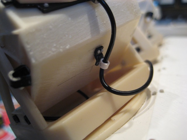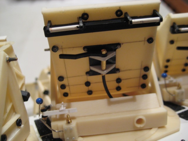 Nun fehlten noch kleine Ringe am Werferrahmen und die Halter für die spätere Anschlußkabelführung.