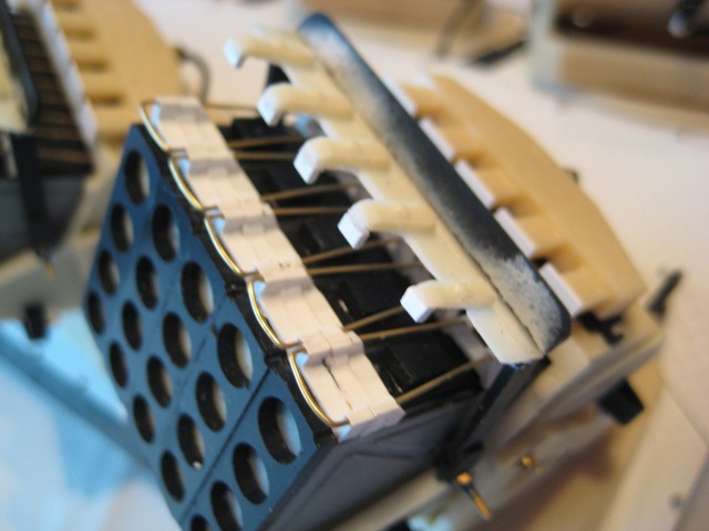 Die kleinen Frästeile wurden angeklebt und mit einem Messingdraht bestückt.