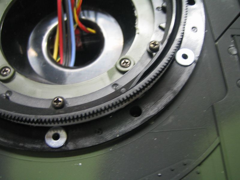 Du mußt schon den kompletten Turm abnehmen um den Drehkranz zu zerlegen !