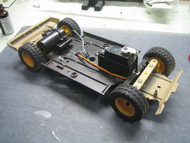 Als Motor habe ich dort einen Graupner Speed 280 drin und natürlich mußte ich um auf die Spur zu kommen die Achsen ein wenig Kürzen.