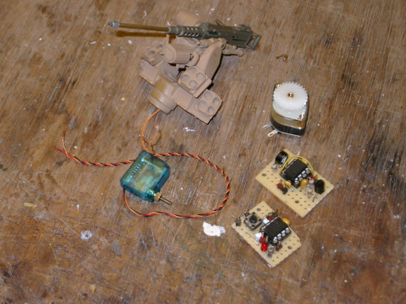 Der Plan war, das Servo an den Servoanschluß der Kanone anzuschließen. Somit wäre die Bewegung einigermaßen gleichmäßig und auch an den Endlagen begrenzt.