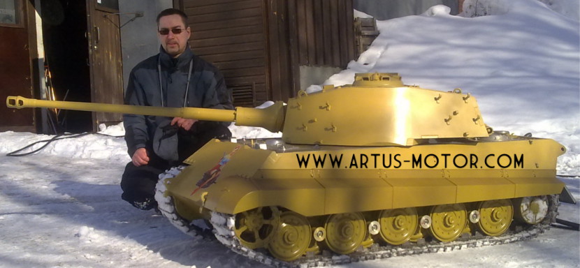 Ab 500 kg aufwärts kommt zur Größe noch das Gewicht als Problem, denn der übliche Kombi-PKW packt das dann nimmer, und auch die Auffahrrampen tragen selten mehr. Unsere derzeit im Bau befindlichen 1:3-Kötis (projektiert auf bis zu ca. 1.000 kg) werden daher auf echten Auto-Transportanhängern bewegt werden, was bei der Gesamtlänge von ca. 3,6 m auch nicht anders machbar wäre. Maßstäbliche Panzerstärken streben wir bewußt nicht an, weil die Gewicht und Antriebsleistung derart in die Höhe schrauben würden, daß an E-Motoren nicht zu denken wäre. Die Mehrzahl unserer Mitbauer will aber auch bei 1:3 den E-Antrieb, weil ein echter Verbrenner einfach häßlich klingt (auch wenn es bei 1:3 in einem Fall ein 135 PS-Vierzylinders fürs Motorrad ist!). Echte Wandstärken bringen m.E. auch nirgendwo Vorteile. Eine Gartenmauer etc. durchbricht auch das nicht gepanzerte 1-Tonnen-Modell mühelos.