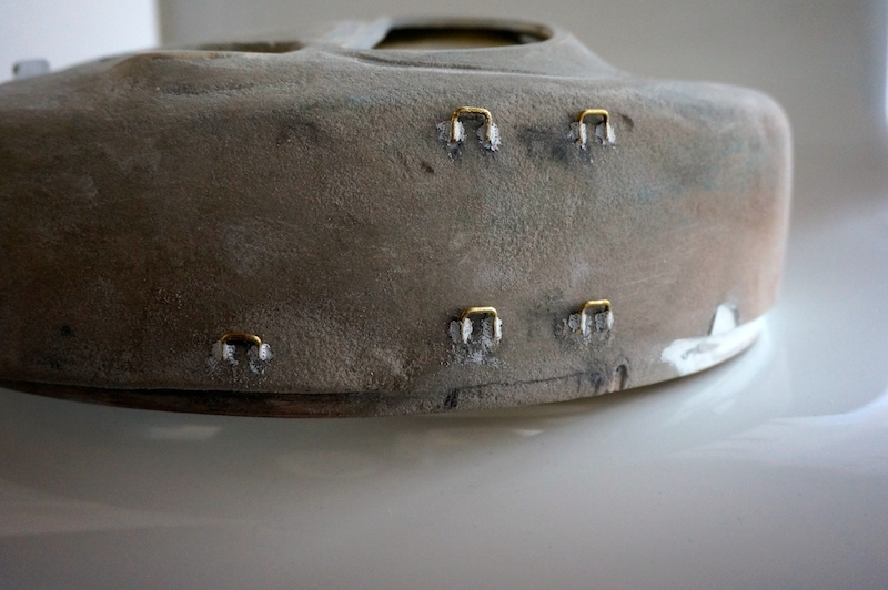 Die rauhe Oberfläche entsteht durch Molto Holz Reparaturspachtel. Mit etwas Wasser verdünnt lässt sich das gut verarbeiten, und es haftet eigentlich auch auf allen sauberen Oberflächen, Metall scheint auch kein Problem zu sein. Nach dem auftragen und trocknen schleife ich es dann per Hand in Form, abhängig von der gewählten Körnung bekomme ich eine grob oder fein strukturierte Oberfläche, die gußähnlich aussieht. -- Grüße, Kay