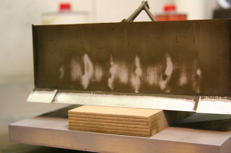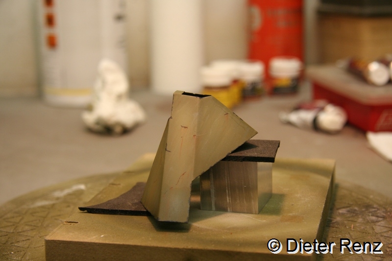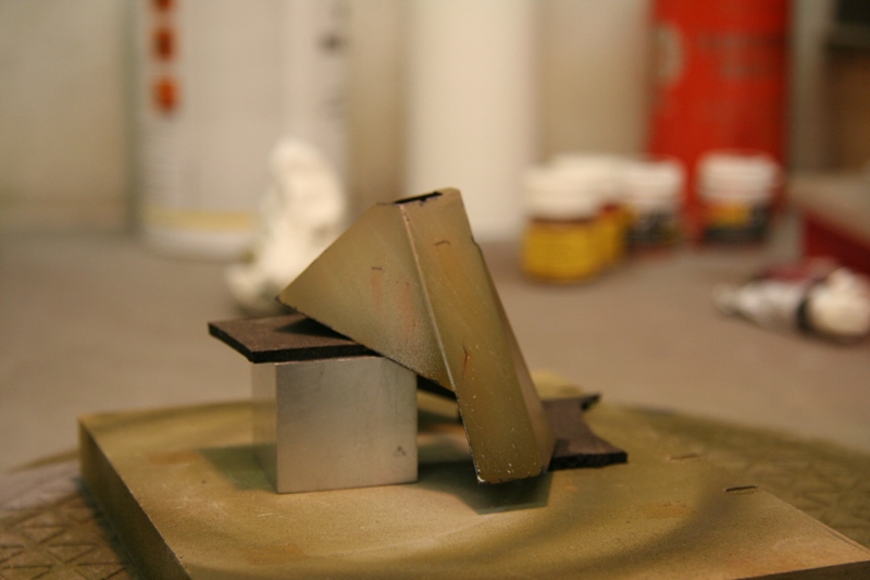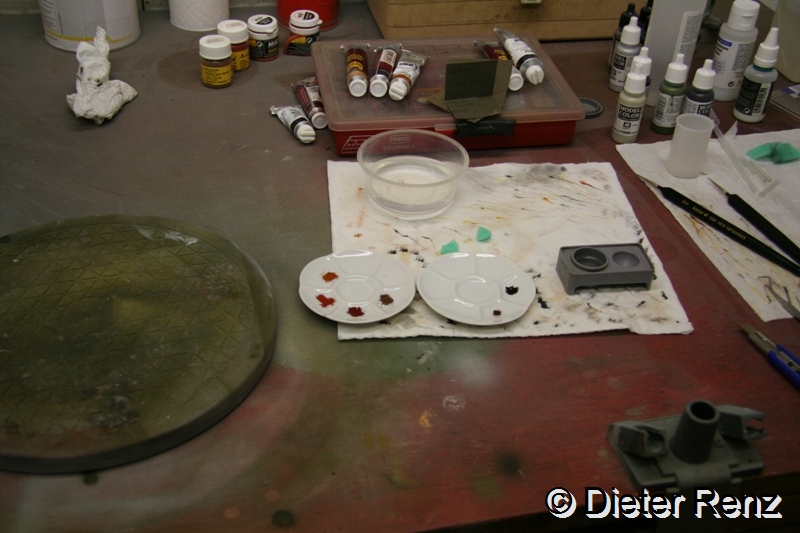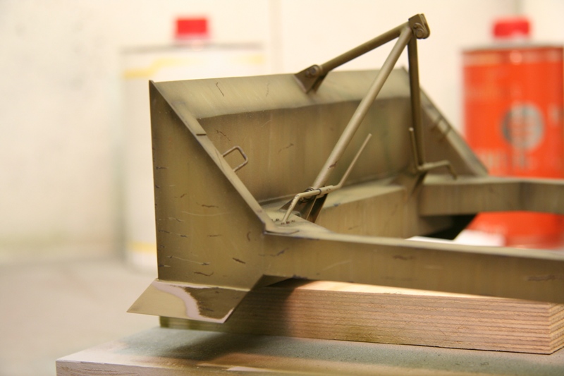 Zum Schluss gehe ich gerne hin und nehme einige Pigmente und viel Terpentin, mach daraus eine Rostfarbene brühe und Pinsel das über die Fläche, somit sieht es aus als ob Überall etwas Flugrost drauf ist.