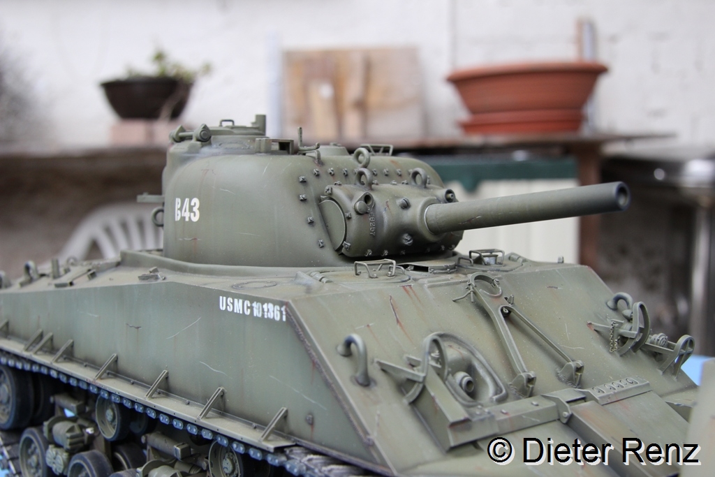 Ich muss ja zugeben, dass mich der kleine Sherman an sich eigentlich ja nun so überhaupt nicht reizt. Aber schon die Ausführung Deines Baus fand ich interessant. Und dann erst die Lackung, der Oberhammer! Einfarbige Lackierung ist ja mit das Gefährlichste (weil potentiell langweiligste), was man machen kann. Womit wieder bewiesen wäre, dass mit der Farbgebung das Modell steht und fällt.