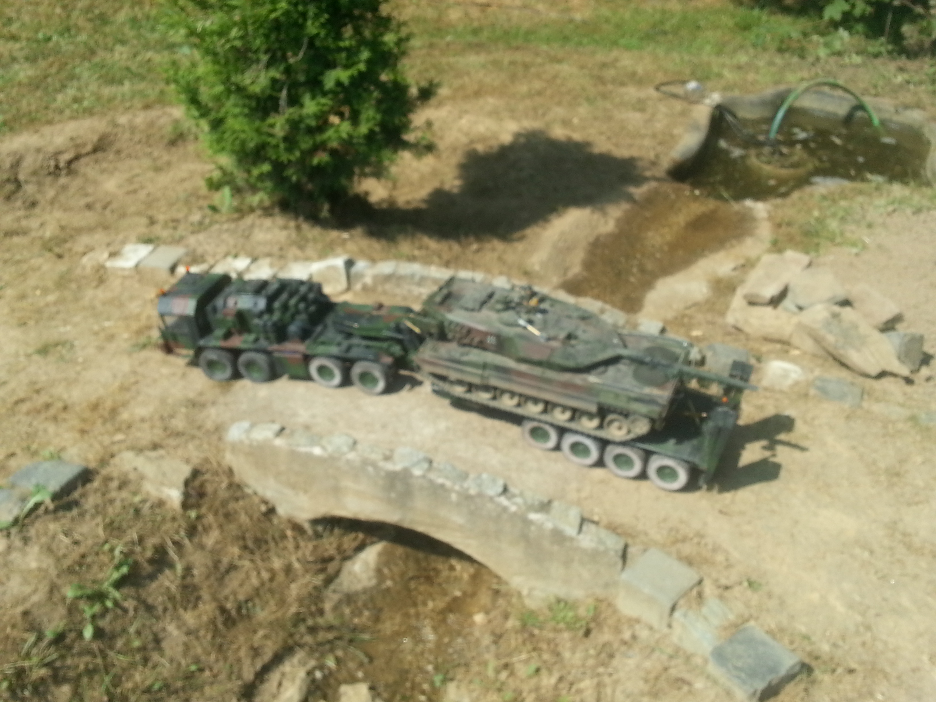 Wir hatten alle Dioramenteile aufgestellt und den Bachlauf zum Laufen gebracht.