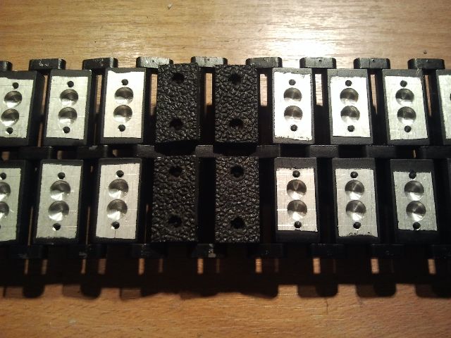 Die Kettenplatten sind aus AluCuMgPb und wurden mit Erleichterungsbohrungen ausgestattet. Naja ich hatte irgendwann Spass am Löcher bohren. Meine Ausschussbox füllte sich inzwische auch nicht schlecht.