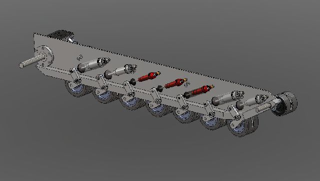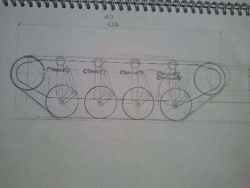 Das war der Zeitpunkt an dem ich nochmal alles zusammengeworfen habe und hier im Forum zu lesen. Da ich eigentlich keinen Panzer wollte aber von klein auf auf das geschmeidige Abfedern eines modernen Panzers stehe, wurden die Entwürfe immer panzerähnlicher (da half auch ein gewises Forum). Seltsamerweise habe ich die Schrägen etc nicht abgenommen sondern am Einfederverhalten der Laufrollen ausgemessen und schon sah die Wannenform Panzertypisch aus.