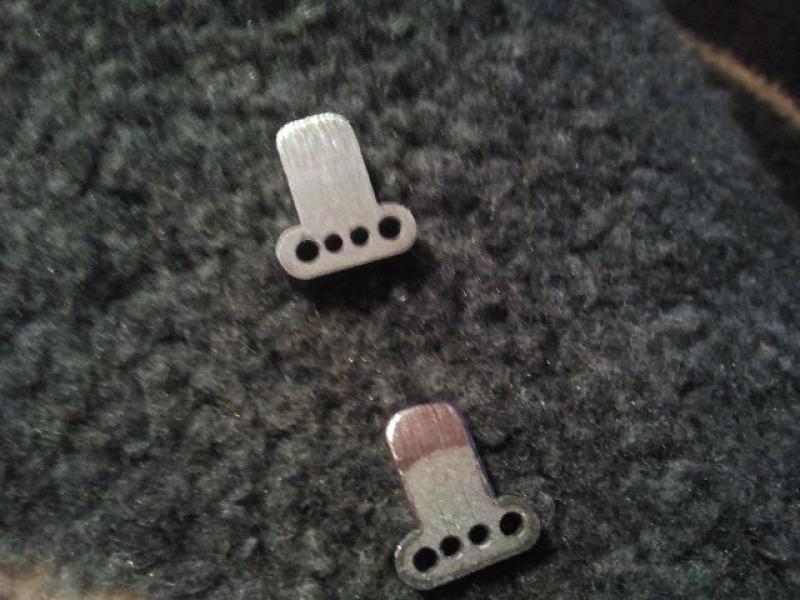 Die Kettenbolzen sind aus 2,5 mm Federstahl. Endverbinder und Kettenzahn aus St37. Endverbinder wurden auf 2,47 gerieben um dann aufgepresst zu werden.