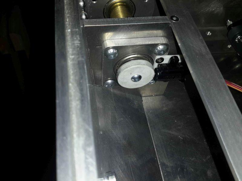 Auf einer Seite habe ich aus Poly eine mehrlagige Scheibe gefertigt in die 2 Magnete eingeklebt wurden. Hiermit kann ich dann eine RPM Messung durchführen.
