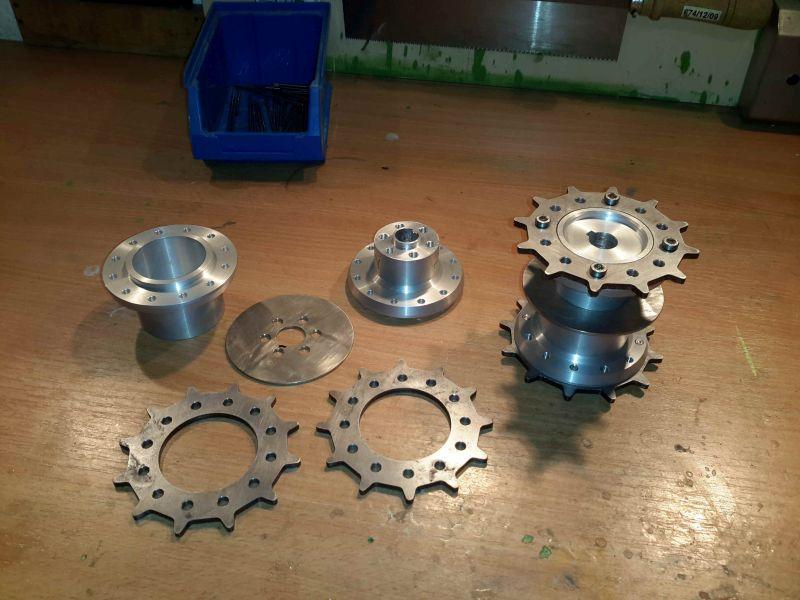 Die Kränze und die Mittelführung sind aus Stahl, die Felge sind 2 Drehteile, die ich in Auftrag gegeben hatte.