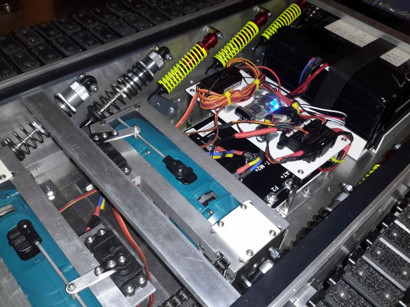 Die Zeit bis ein neuer Regler eintraf, habe ich mir mit der Revision der Stoßdämpfer vertrieben. Alle raus. 2500er cst Öl rein in die Großen und 1250 in die kleinen + neue stärkere Federn für eben diese. Nun ist das Fahrverhalten ziemlich geschmeidig. Muss aber sagen das die Dämpfer bei den 40 Kg die das Ding wiegt gerade noch reichen. Das war auch genau so erwartet da ich Tests mit den Dämpfern im Vorfeld gemacht hatte.