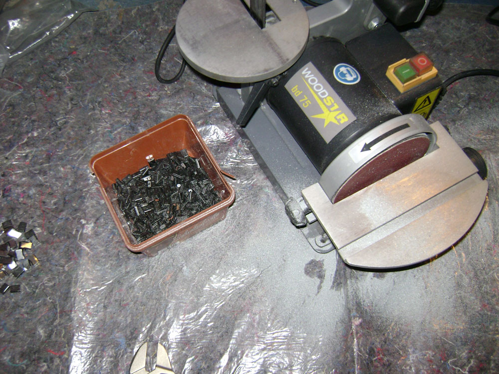 Also frohen Mutes ans Werk, erst einmal das Muster an der Unterseite der Glieder abschleifen.