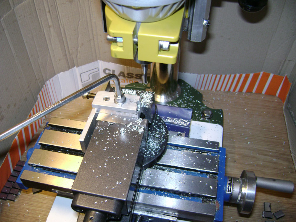 Ich glaube, ohne diese Vorrichtung hätte ich das nie hin bekommen, allein das Kettenglied einspannen, eine Katastrophe, gut das ich immer eine Schutzbrille anhabe beim Zerspanen, das wär mächtig ins Auge gegangen.