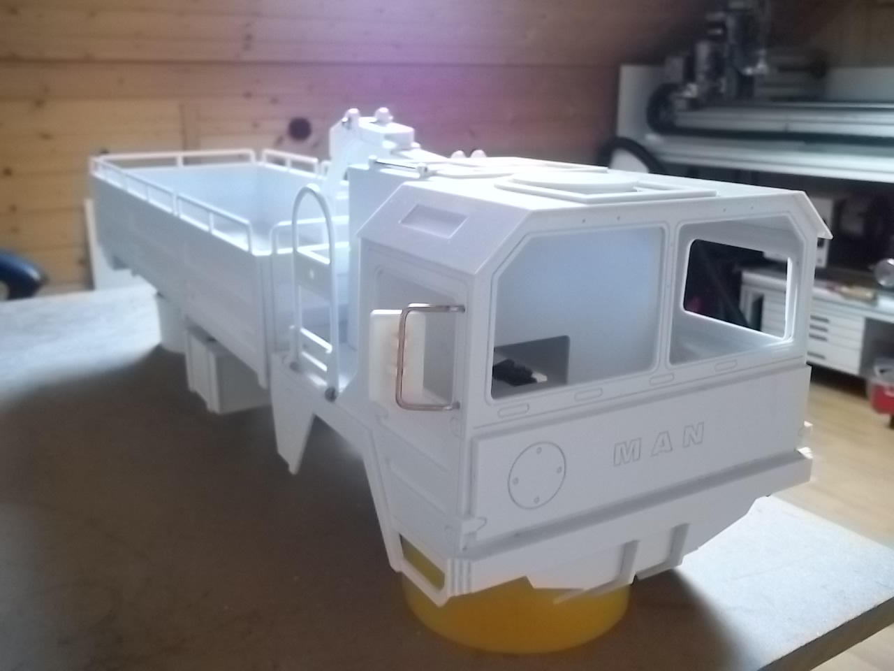 Und wenn man schon dabei ist, solltest Du evtl. den MAN Schriftzug nicht einfräsen, sondern eher als separates Frästeil herstellen und dann aufkleben .