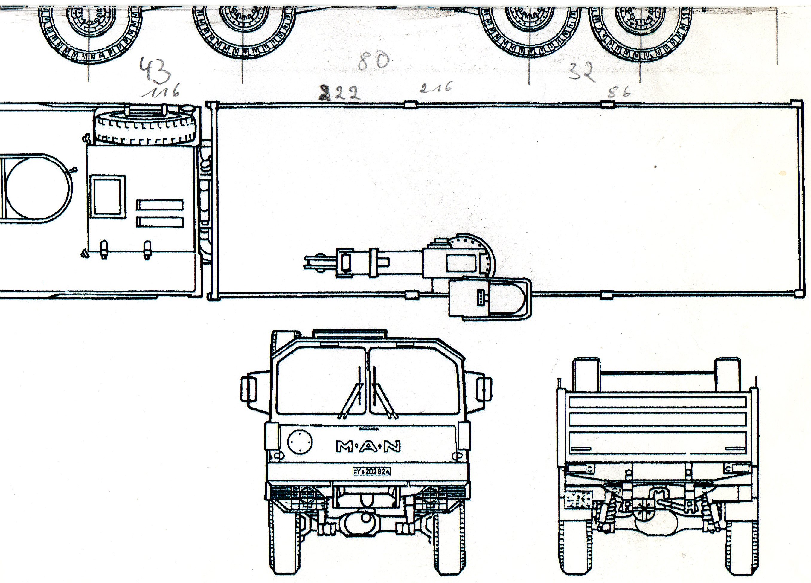 ich würde bei der Zeichung mal drauf tippen, das diese im Ursprung noch auf der ersten Variante des MANs basiert. Damals wurden noch die gelben Schilder (MLC) mit dem Gewicht des Fahrzeuges angeschraubt.