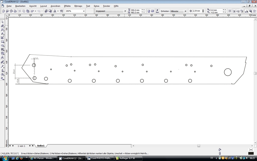 ich habe die Wanne zusätzlich hinten um 6mm verlängert (zwischen letzter Laufrolle und Antriebskranz).