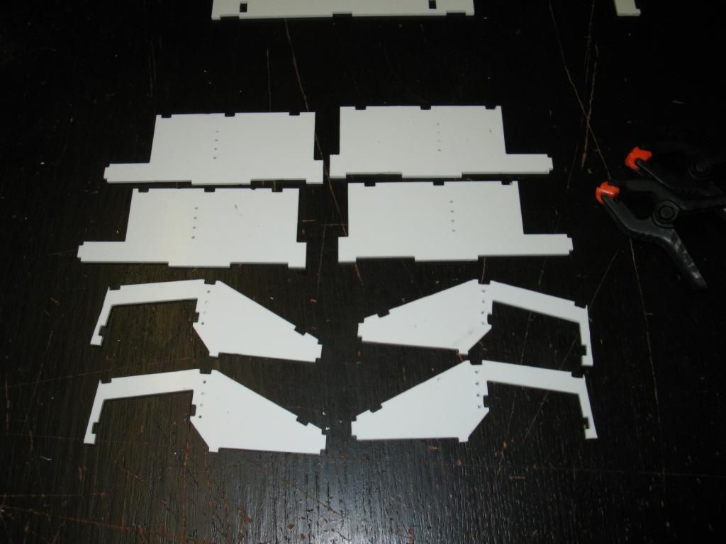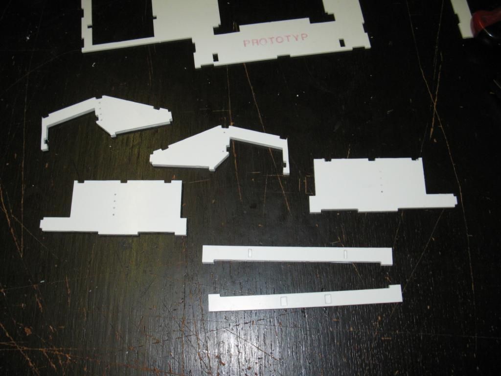Nun die fertigen Teile in Position bereitgelegt, wie sie später eingebaut werden sollen.