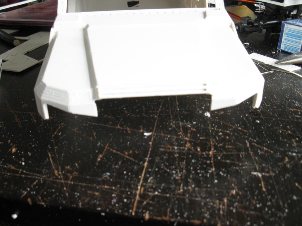 Am hinteren Rand der Motorhaube muß man darauff achten, Platz für den gepanzerten Zusatzrahmen zu lassen.
