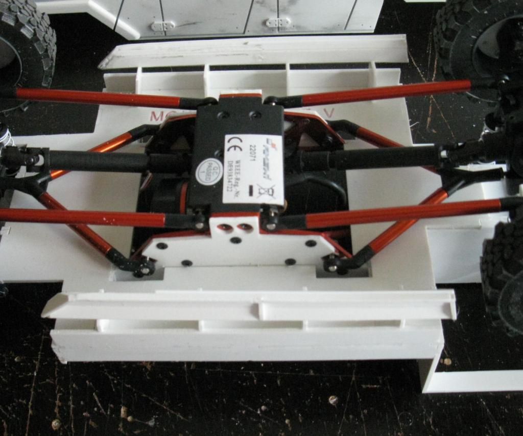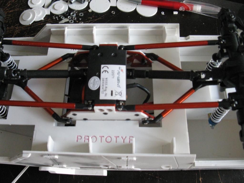 Das Kulak-Fahrgestell passt von der Länge und Breite perfekt unter die Eagle´s, 4er und 5er, der Dingo hat einen fast 2 cm längeren Radstand, hier müßen dann die Links, die Verstrebungen der Achsen, verlängert werden.